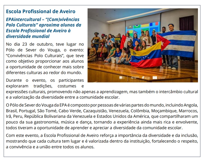 “(Com)vivências Polo Culturais” no 9.º Boletim de Notícias da Comissão Nacional da UNESCO Boletim Completo Veja também INCLUSIVO’24: INTELIGÊNCIAS MÚLTIPLAS NO DIÁRIO DE AVEIRO SENIOR TRAINING 2025, UM MOMENTO DE FORMAÇÃO ÍMPAR MAPSKILLS UM SELO DE QUALIDADE I JORNADAS OVP