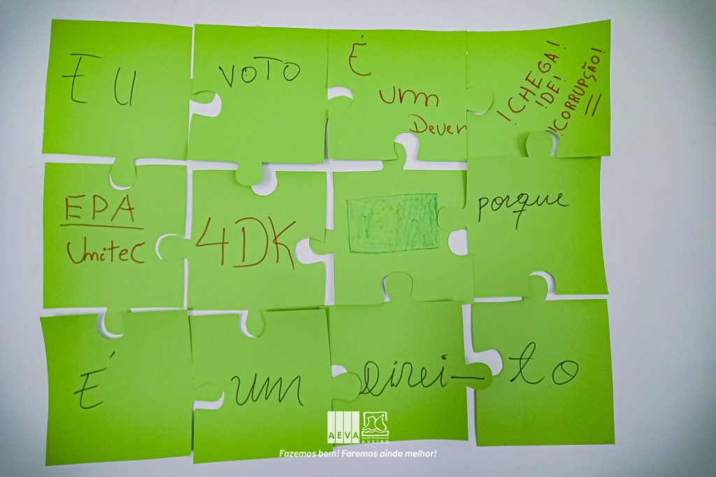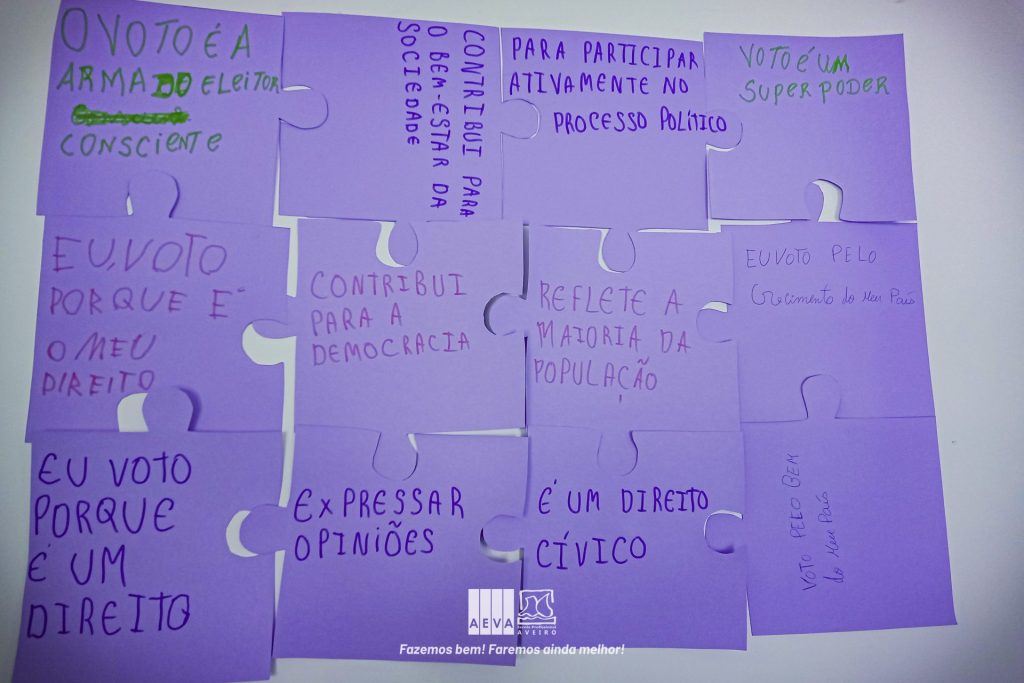 Ativamente, JUNIORES de EQUIPAS da UniTER e UniTEC, participaram nesta ação que foi preenchida com um programa que incluiu uma sessão de cinema, a dinâmica “Eu votarei porque…” que consistiu na construção de um puzzle com o intuito dos jovens compreenderem que, se todos fizermos a nossa parte, se todos cumprirmos os nossos direitos e deveres, se todos tivermos uma voz ativa, com certeza criaremos uma Europa e um Mundo melhor!