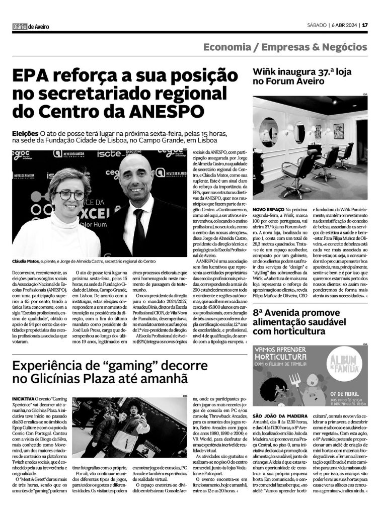 EPA REFORÇA A SUA POSIÇÃO NO SECRETARIADO REGIONAL DO CENTRO DA ANESPO Diário de Aveiro [06/04/2024] Veja também