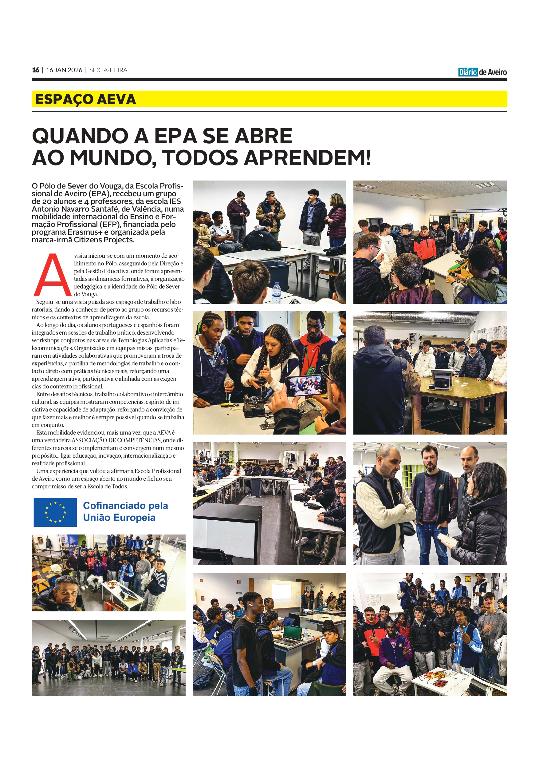 QUANDO A EPA SE ABRE AO MUNDO, TODOS APRENDEM! Diário de Aveiro [16/01/2026] Veja também INCLUSIVO’24: INTELIGÊNCIAS MÚLTIPLAS NO DIÁRIO DE AVEIRO SENIOR TRAINING 2025, UM MOMENTO DE FORMAÇÃO ÍMPAR MAPSKILLS UM SELO DE QUALIDADE I JORNADAS OVP