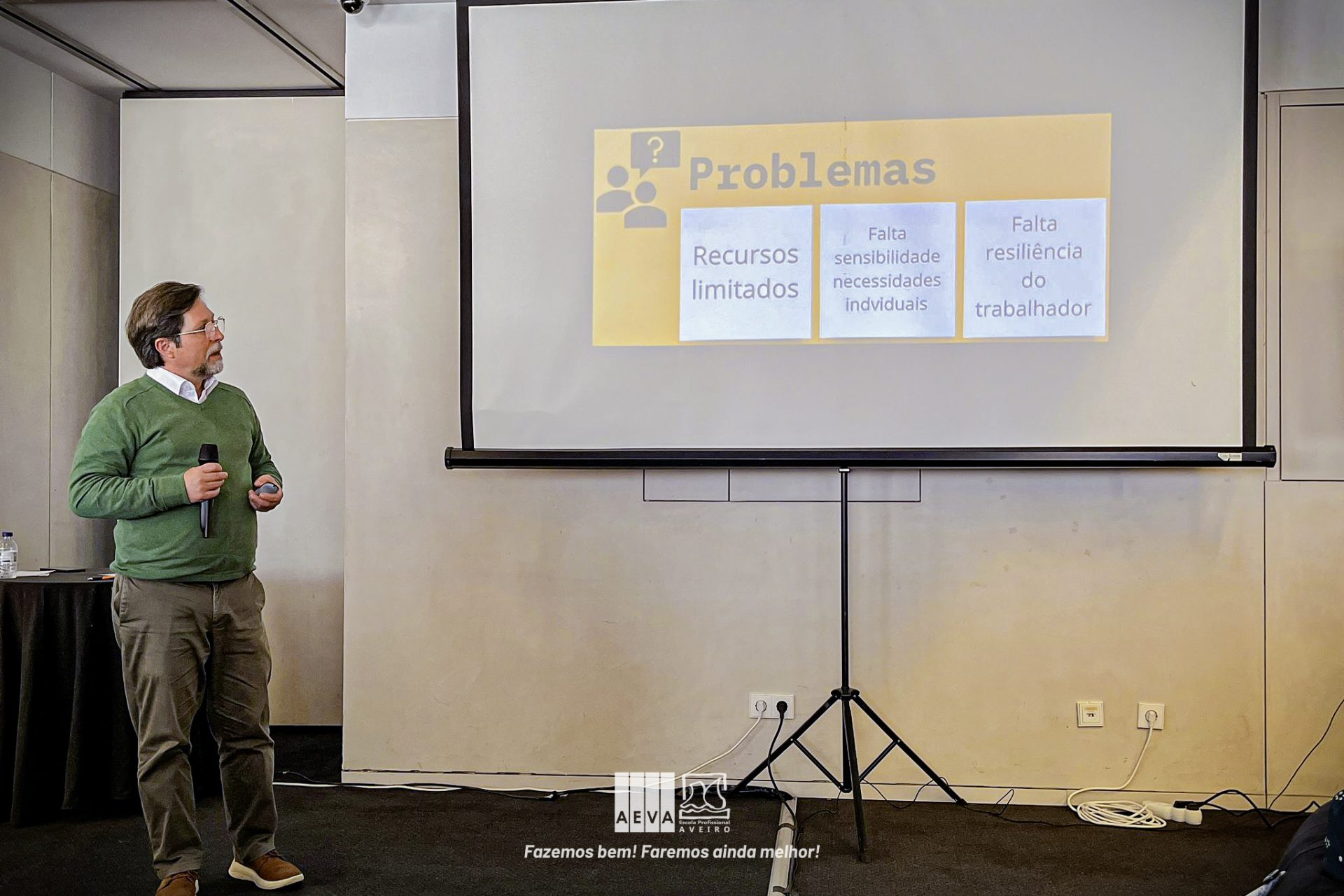 Dez mesas de trabalho, em modo “World Cafe”, cada uma com uma questão/temática, foram desafiadas a pensar sobre essa mesma questão, procurando identificar uma ideia, três problemas e cinco soluções. No final, cada grupo de trabalho, apresentou o desidrato do trabalho produzido. Imigração, igualdade de género, responsabilidade social, sustentabilidade, perturbações de comportamento, choque intergeracional, saúde mental, lei laboral, emprego protegido e curriculum vs mercado de trabalho, foram os assuntos objeto de reflexão. Especialistas vindos de entidades como HORSE, CASCI, FUNFRAP, CSWind, Fundação CESDA, Ordem dos Psicólogos Portugueses, Associação Mutuus, Autoridade Para a Condições de Trabalho, FORMEM e ANQEP, trouxeram conhecimento e o background necessário que viria a permitir que, numa mesma mesa fosse possível juntar visões, idades e competências diferentes, mas com o mesmo denominador, fazer mais, fazer ainda melhor.
