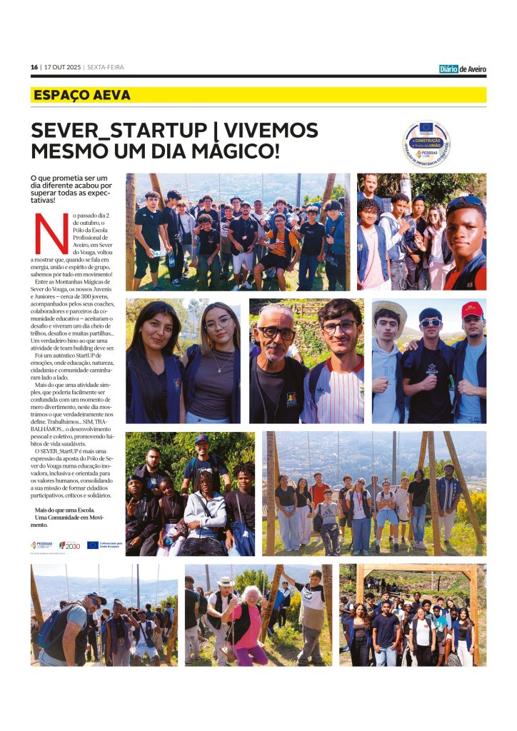 SEVER_StartUP VIVEMOS MESMO UM DIA MÁGICO! Diário de Aveiro [17/10/2025] Veja também INCLUSIVO’24 NO DIÁRIO DE AVEIRO COSTURAMOS COMPETÊNCIAS, CONTAMOS HISTÓRIAS! MEDO DE FALHAR? NÃO FAZ PARTE DA NOSSA IDENTIDADE