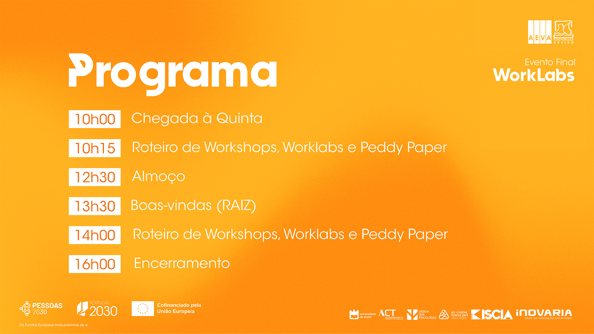 No próximo dia 09/07, realizar-se-á, no Instituto RAIZ- Quinta de S. Francisco, o Evento final Worklabs.